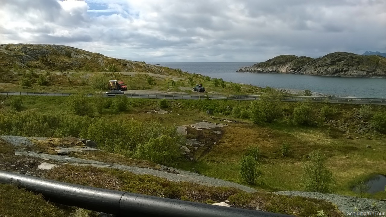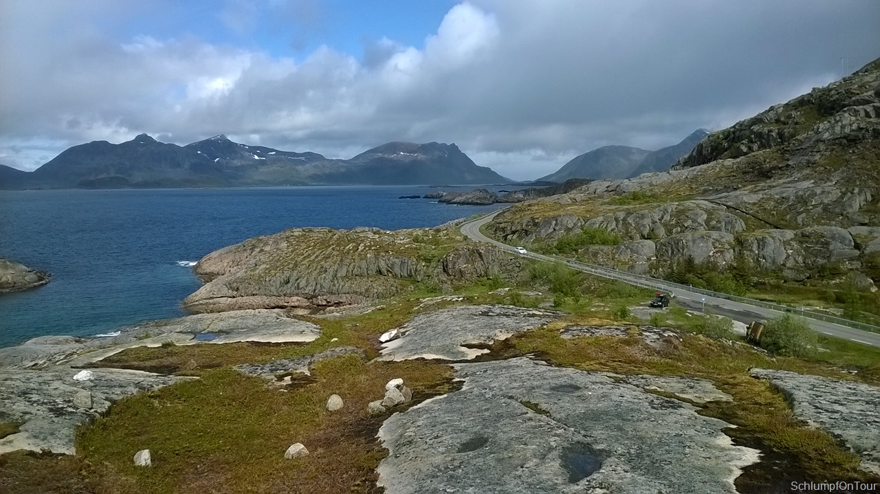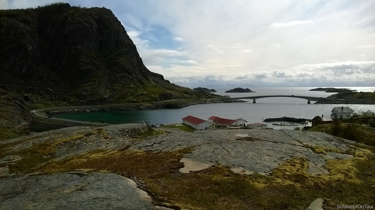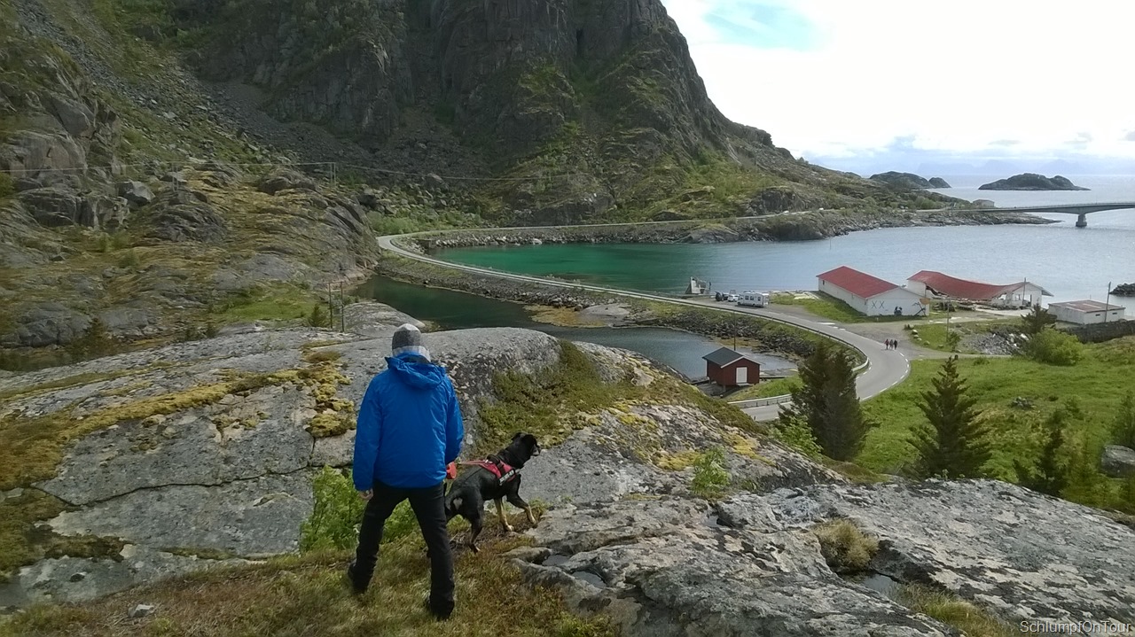 Doch bevor wir in Henningsvear angekommen sind, sind wird durch/über mehrere Fjorde gefahren, der Weg verband einzelne Gesteins & Inselgruppen (oder wie auch immer man das bezeichnen möchte). Da der Tommy auch mal wieder sein Recht auf Gassi geltend macht, nutzten wir einen größeren Gebirgsvorsprung. Hier konnten wir entspannt “kraxeln”.